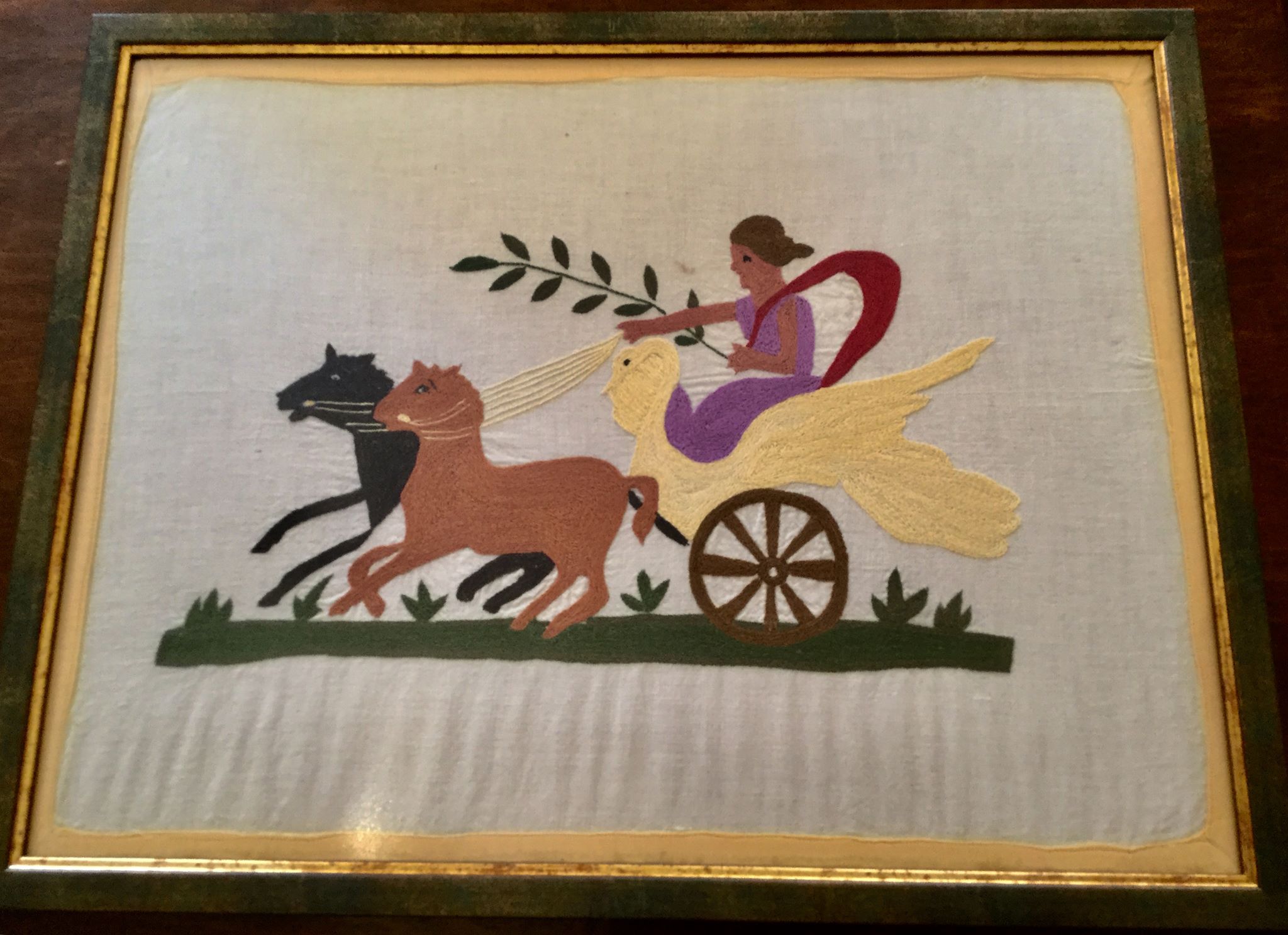 Decorative embroidery of special style known as “Byzantine embroidery” with a Demeter in a chariot. 80 years old.