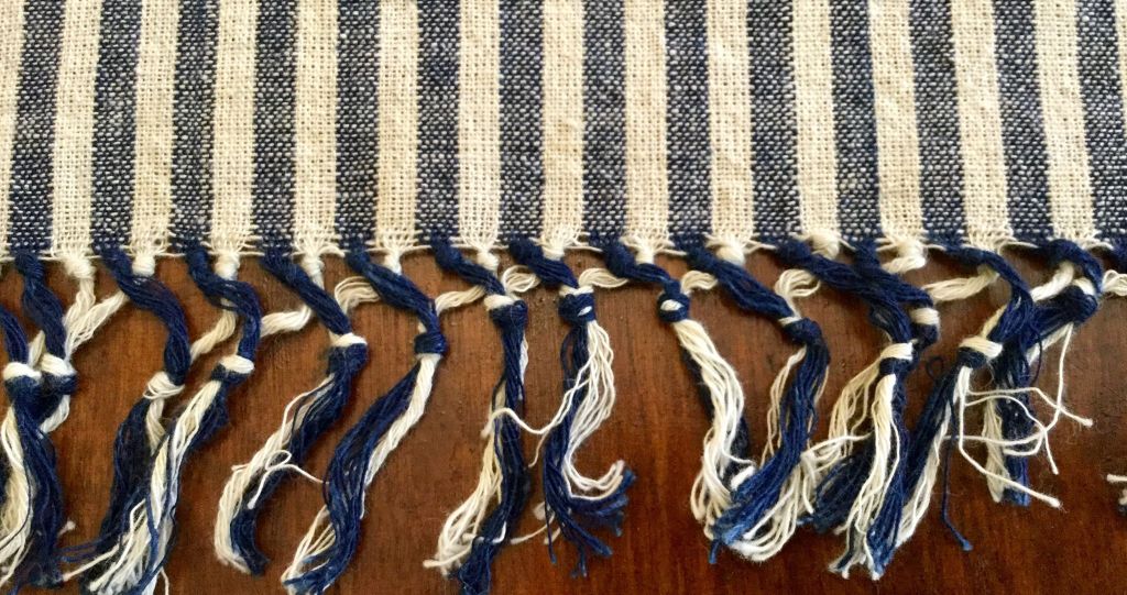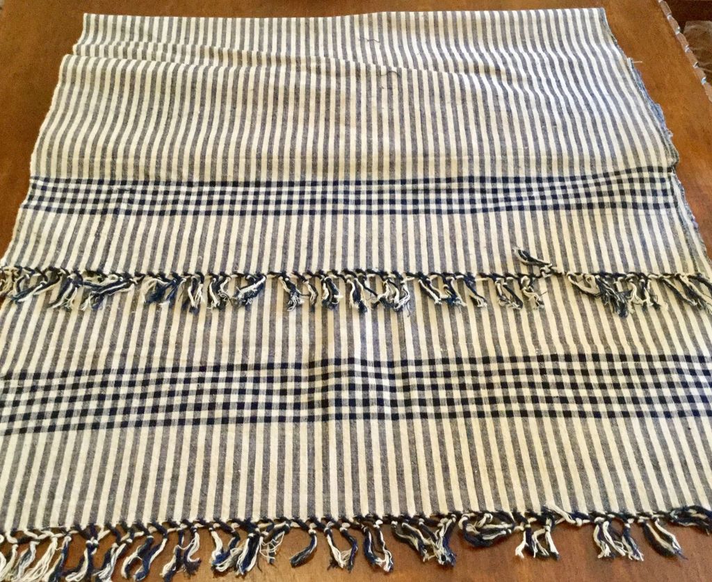λευκό ύφασμα υφαντό με σχέδιο καρό και με ιδιαίτερα και πλούσια κρόσσια τα χρησιμοποιούσαν και για διακόσμηση του σπιτιού 90 χρόνων.