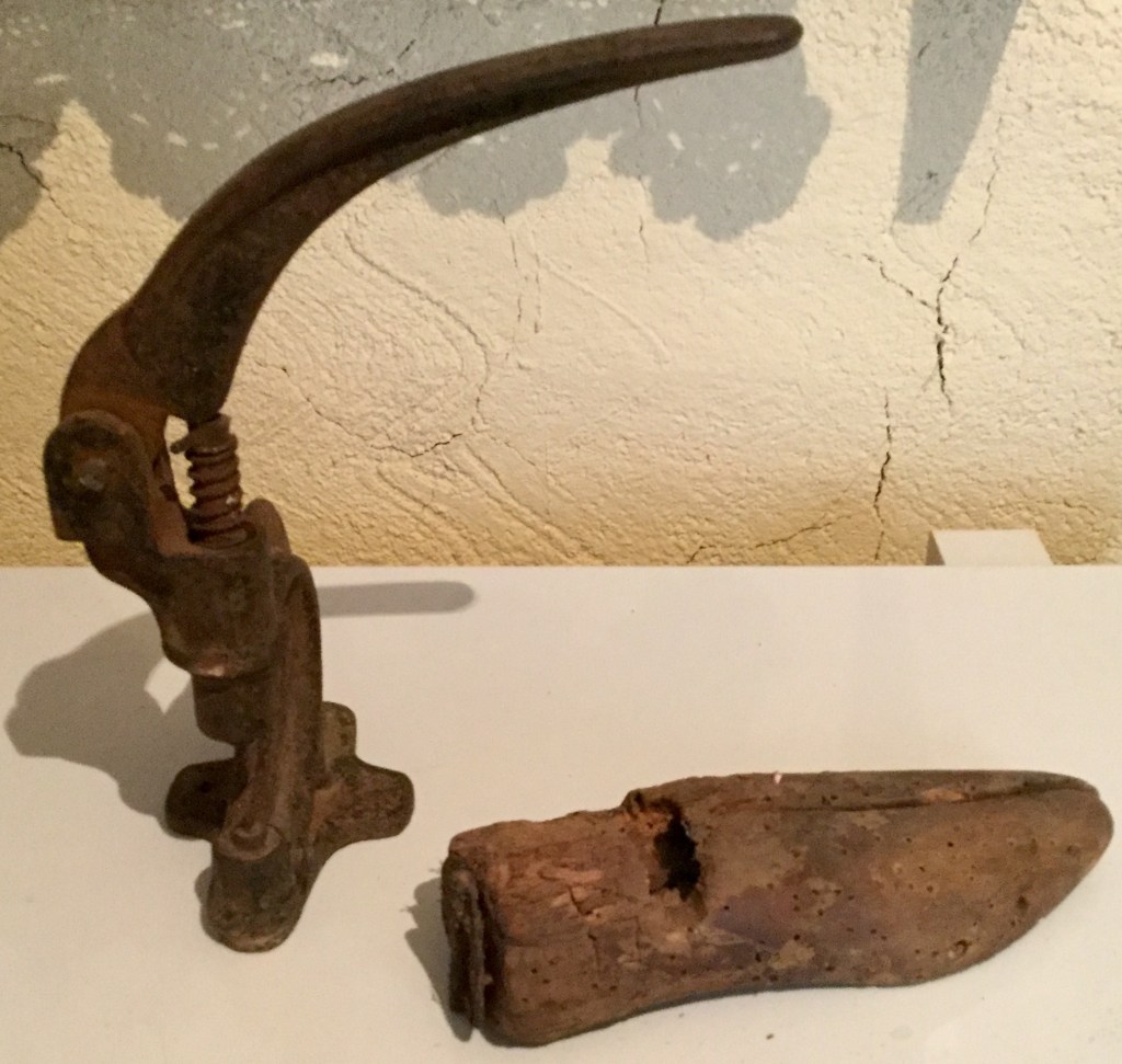 εργαλείο και καλαπόδι (καλούπι παπουτσιού )από το τσαγκαραδικο Βασιλείου Δημητρόπουλου που ήταν τσαγκάρης στο Δαφνί 80 χρονων.
