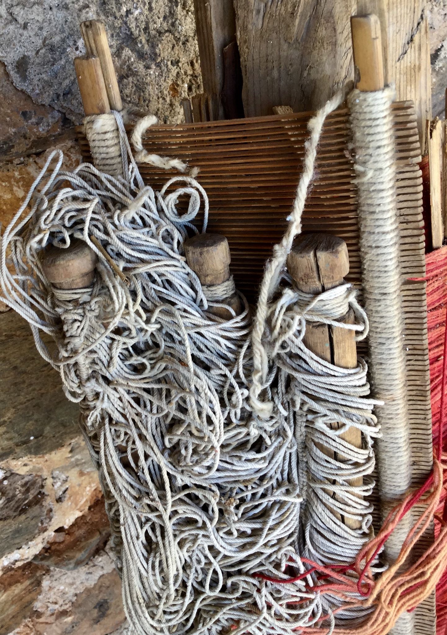εξαρτημα αργαλειού με νήμα για την κατασκευή ρούχων.