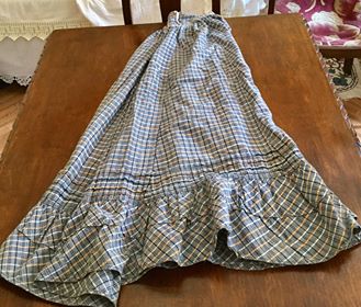 υφαντή φούστα παραδοσιακής φορεσιάς με γκρι χρώμα με τρίχρωμες ρίγες με όμορφο τελειωμα στο κάτω μέρος .πίσω είναι με πιο πολλή ύφασμα και μακρύτερο του μπροστινού ώστε να σχηματίζει μικρή ουρά .επιρεασμενο από την στολή της βασίλισσας Αμαλίας . 110 χρόνων.