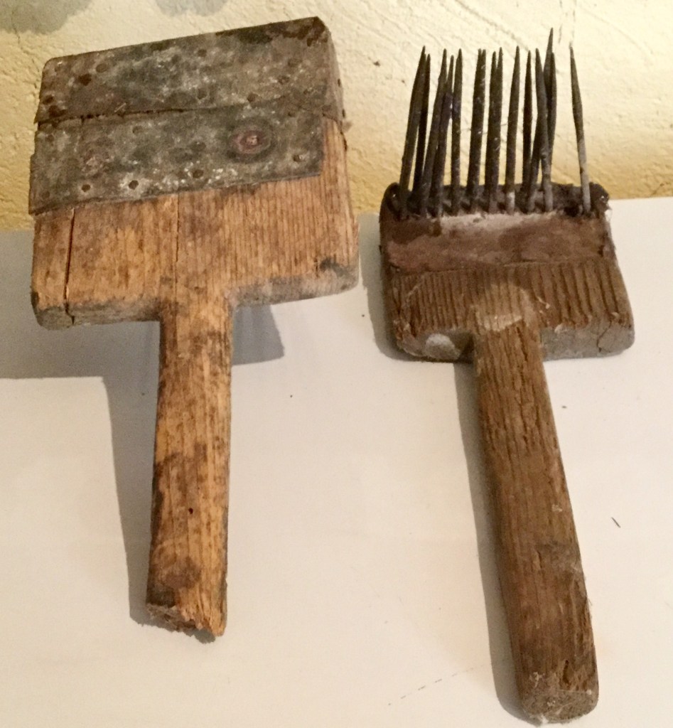 Tool used to comb flax. The flax was scratched and processed in a variety of ways in order to make thread for clothing, sacks, and rugs. 90 years old.