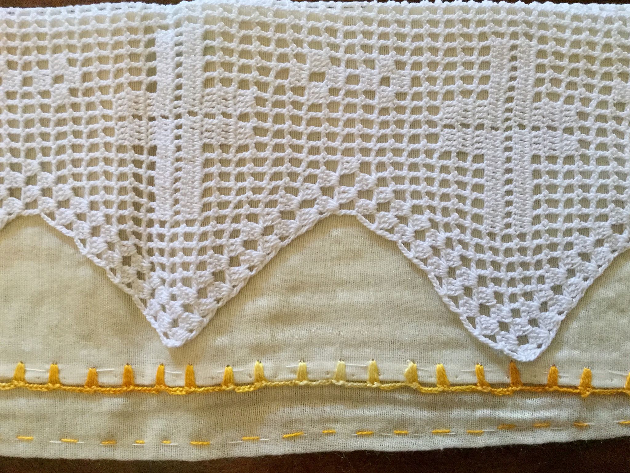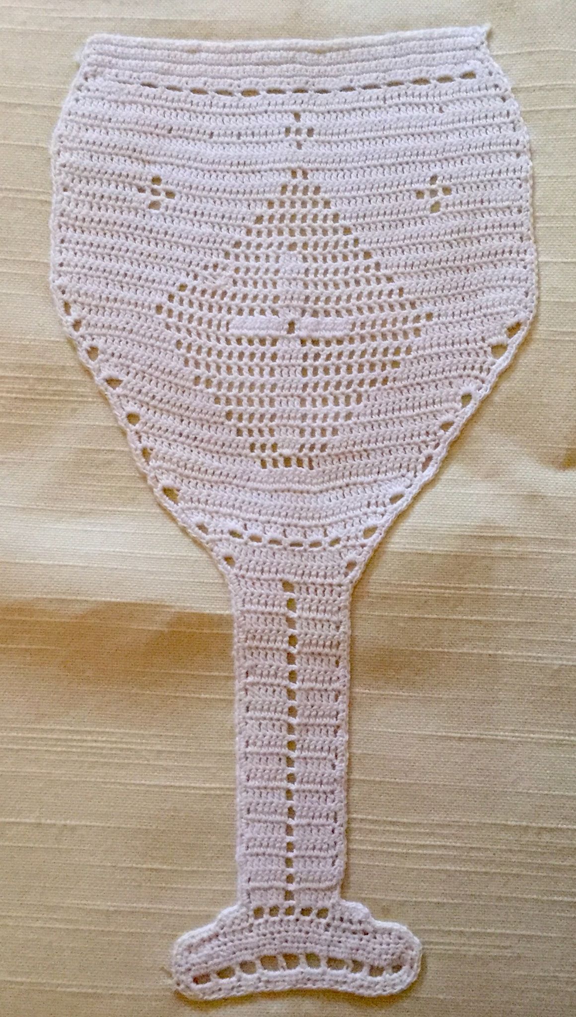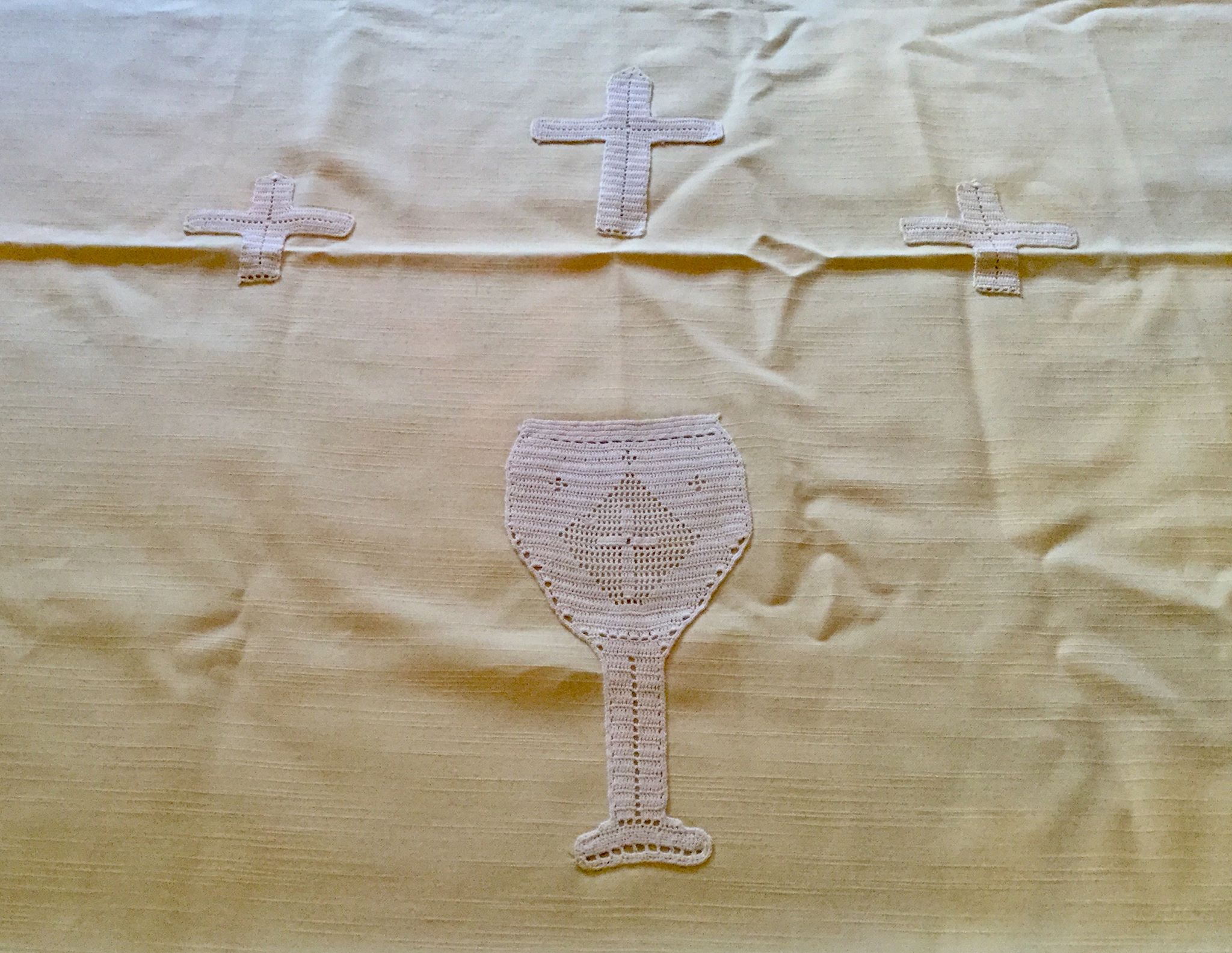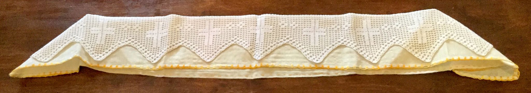Ornamental cloth with a lace design of small crosses to be used in church to decorate icons. 30 years old.