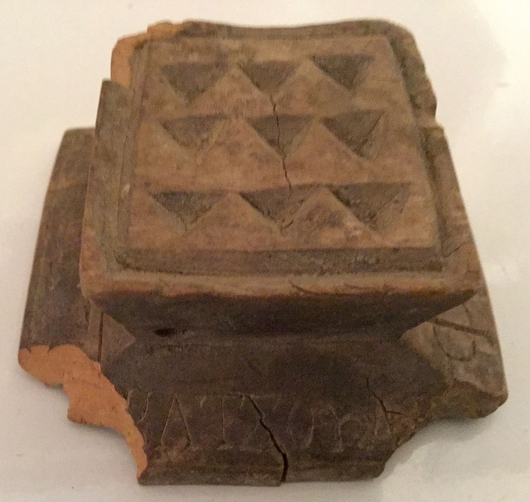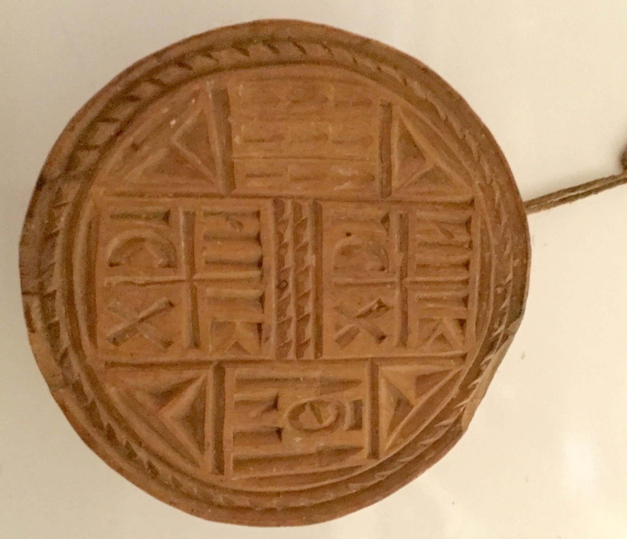 Seal used for holy bread in the divine service of the Greek Orthodox Church. This bread stamp is from 1889. The owner’s name is carved on the side.